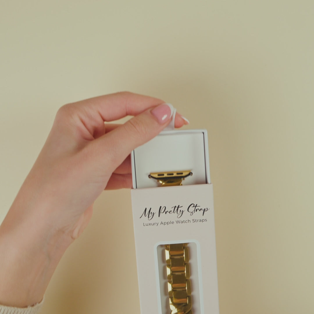 Like the gentle waves of water catching the sun, the Ripple Apple Watch Strap reflects a sense of quiet movement and grace. Forged from stainless steel and kissed with gold, it tells the story of refined beauty shaped by time. With each glance at your wrist, you carry the subtle elegance of nature’s flow — effortless, timeless, and uniquely yours.
